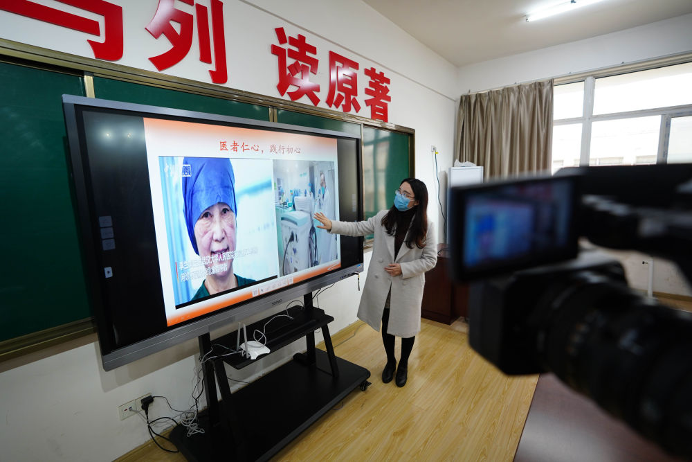 江西南昌豫章师范学院思政课教师通过互联网给学生们上课(2020年3月17日摄)。新华社记者 周密 摄