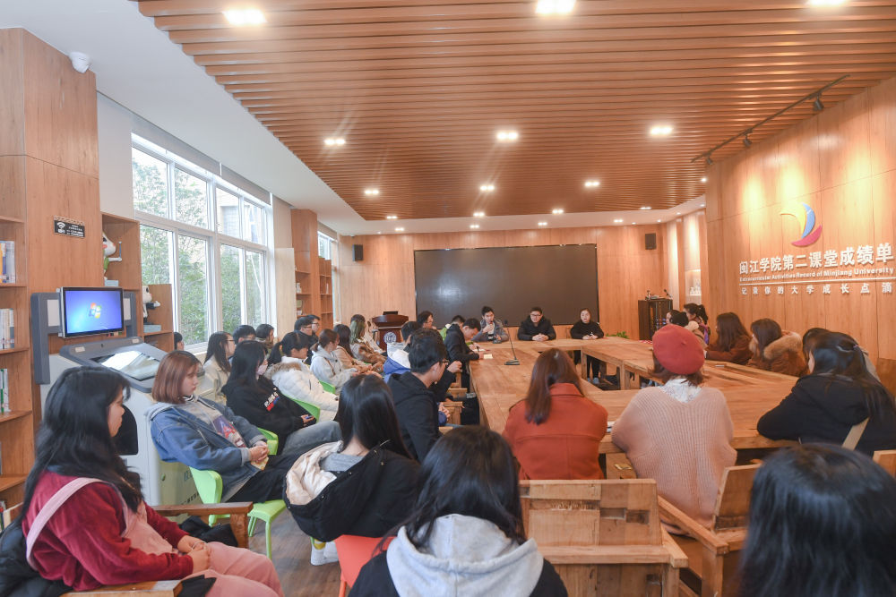 在福建福州闽江学院“第二课堂”数字馆,学生分享参与该校学生思想政治教育创新项目——“青春薪课堂”的体会(2019年1月3日摄)。新华社记者 宋为伟 摄