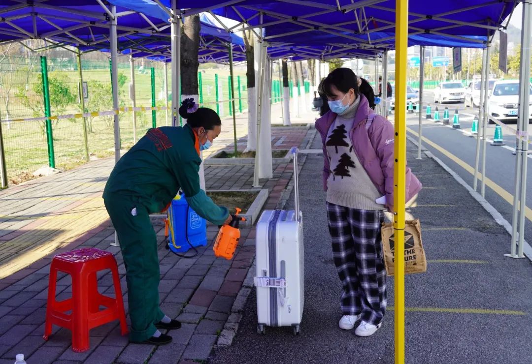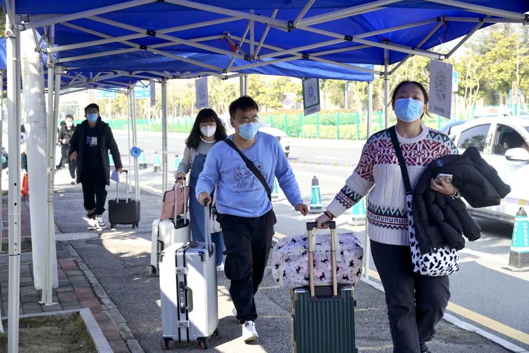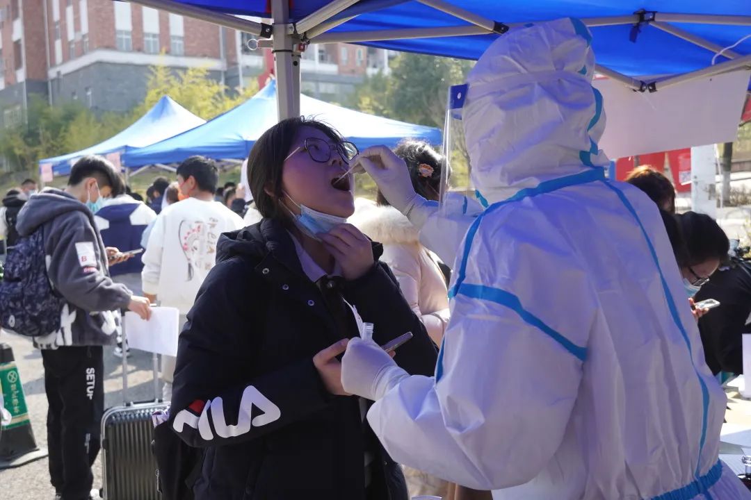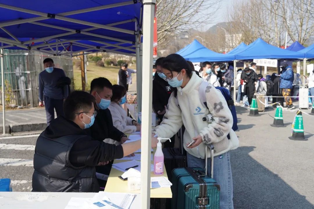 经过行李消毒后,体温无异常的学生将入校再进行一次核酸检测,做好个人防护,方可进入寝室。