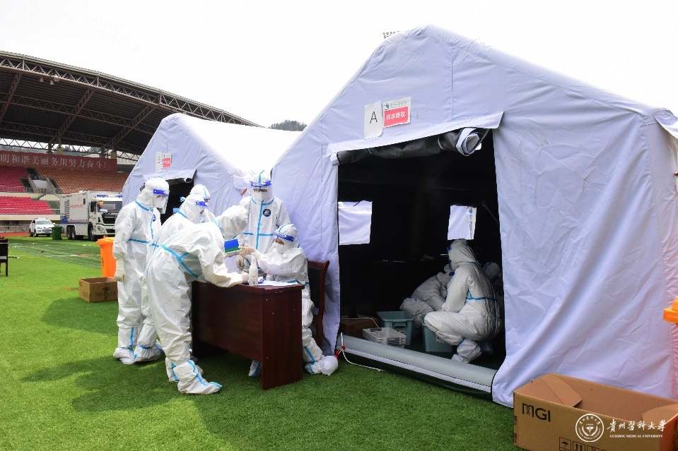 务川自治县疫情发生后,按照省委、省政府、省卫生健康委的统一安排部署,我院第一时间积极响应,于3月12日晚8点,由党委副书记代宏、副院长黄海带领54名专业技术人员和7名行政后勤保障人员,连夜赶往务川自治县,协助当地开展核酸检测工作。