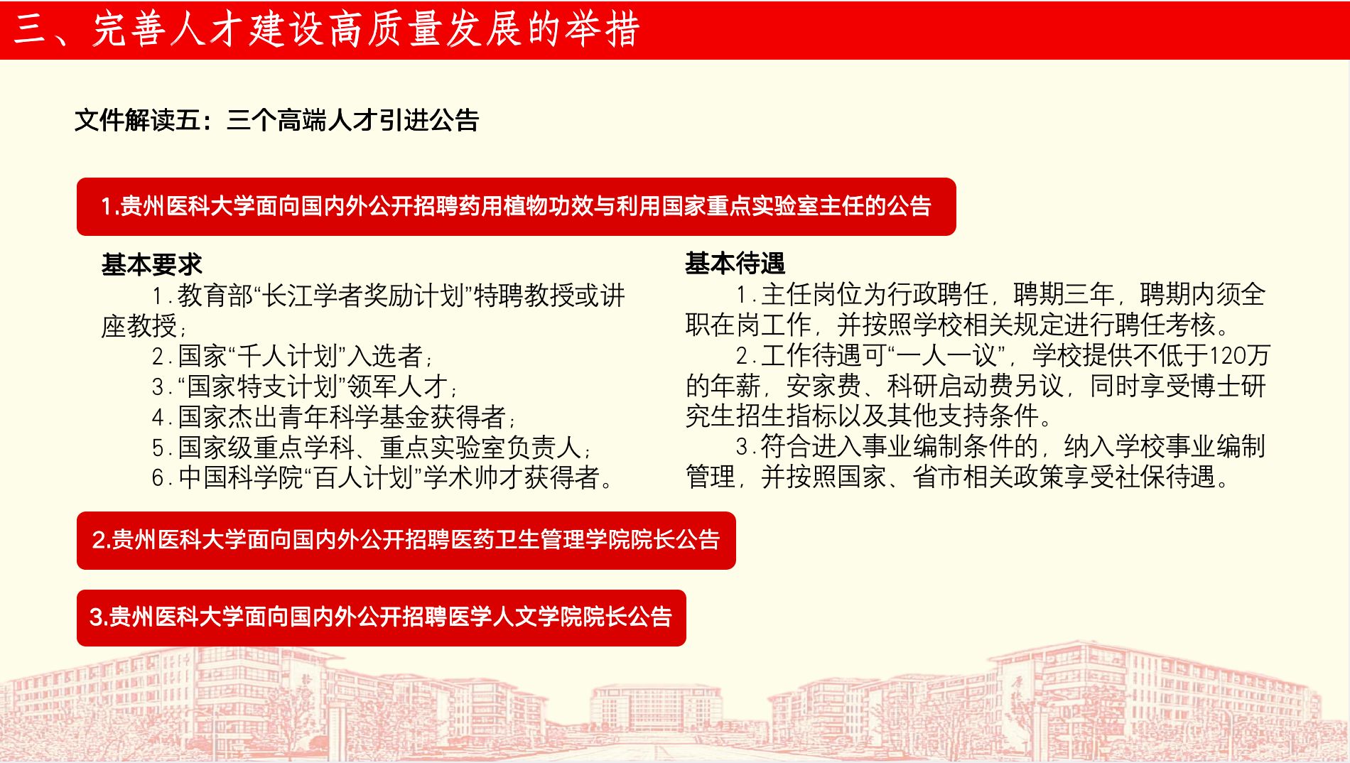 2022年,为了有力推进贵医人才“四大工程”,真金白银投入打造人才“强磁场”,beat365正版唯一官网必一新增了人才工作制度,更加完善人才建设高质量发展举措,并发布了三个高端人才引进公告: