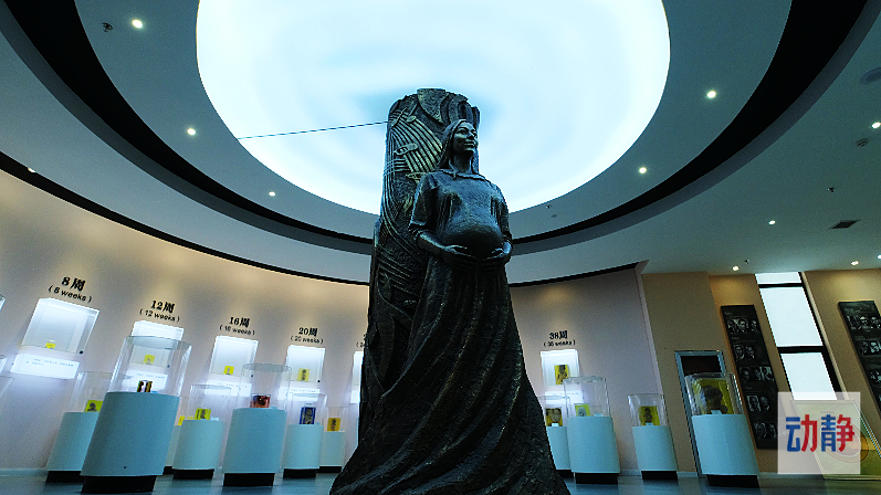 在胚胎学展馆,一位身孕妈妈的雕塑,闪现着伟大母性的光辉。在雕塑后的展示区,展示着一个人从胚胎开始,每周的变化,最后演变至婴儿的整个过程。奇妙的变化,让人自然而然产生对生命的尊敬。