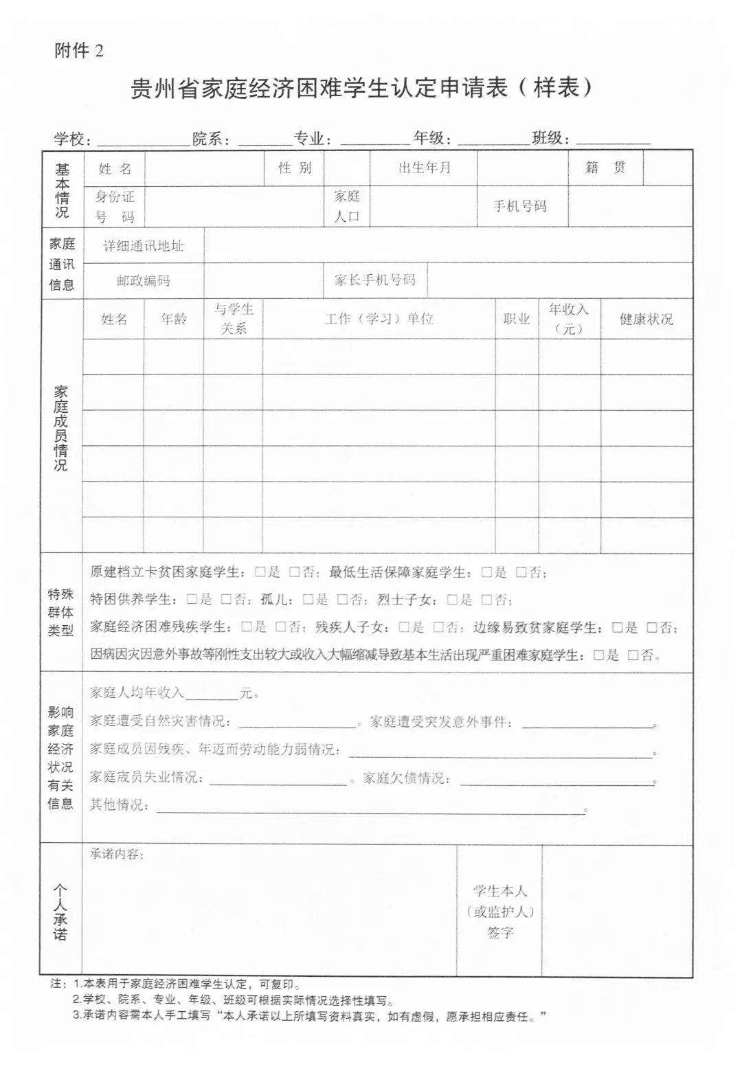 贵州省家庭经济困难学生认定申请表+生源地信用助学贷款申请指南