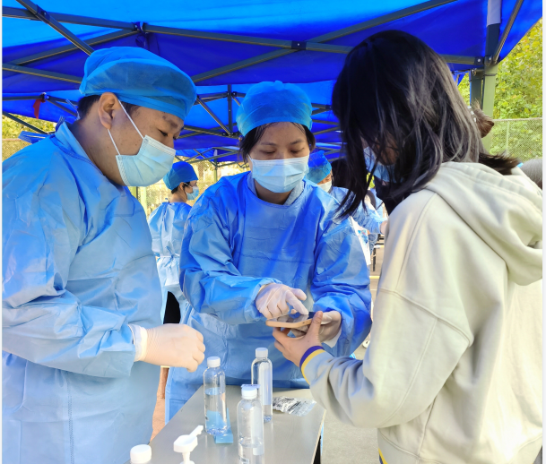 药学院的志愿者在凌晨接到任务后,立刻准备,勇敢逆行,第一时间投入到防疫抗疫的第一线。他们舍小家为大家,主动作为、不计得失,默默坚守岗位,连续三天完成1300余学生核酸检测工作。在抗疫岗位上还将连续坚守,无法顾及家中老小,不顾疲惫的投入了师生摸排走访、教学工作安排等工作中,帮助学生安心度过校园封控期。学院教师积极响应号召,9名青年博士主动报名参加志愿者工作。他们用实际行动践行了“疫情防控见初心,党员先行担使命”的精神。