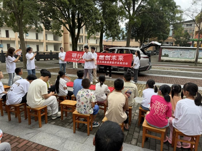 各实践团队积极探索和实践多种创新模式。研工部组织的实践队将研究生实践活动与本科生早接触临床项目相结合,组建本硕博一体化联动队伍,发挥研究生学业领航作用;临床医学院结合“智慧方案”探索模式,针对基层医疗痛点,前瞻性地提出构建“AI+远程”赋能的慢性病管理网、智能化分级诊疗中枢等智慧解决方案,展现了研究生的创新思维;口腔医学院实践队通过“医文融合”模式,将“口腔健康义诊”与“非遗文化体验(扎染、灰豆腐等)”创造性结合,制作“健康+非遗”文创产品,实现了文化传承与健康促进的双赢;医学影像学院实践队通过“五育融合”支教模式,在支教中融入德、智、体、美、劳全面发展的理念,结合医学特色设计课程,为乡村儿童提供全方位的教育关怀;医学人文学院实践队构建“三维”心理服务模式,通过“知识普及(心)+身体体验(行)+艺术表达(艺)”三维一体的老年心理健康服务模式极大提升了服务效果。