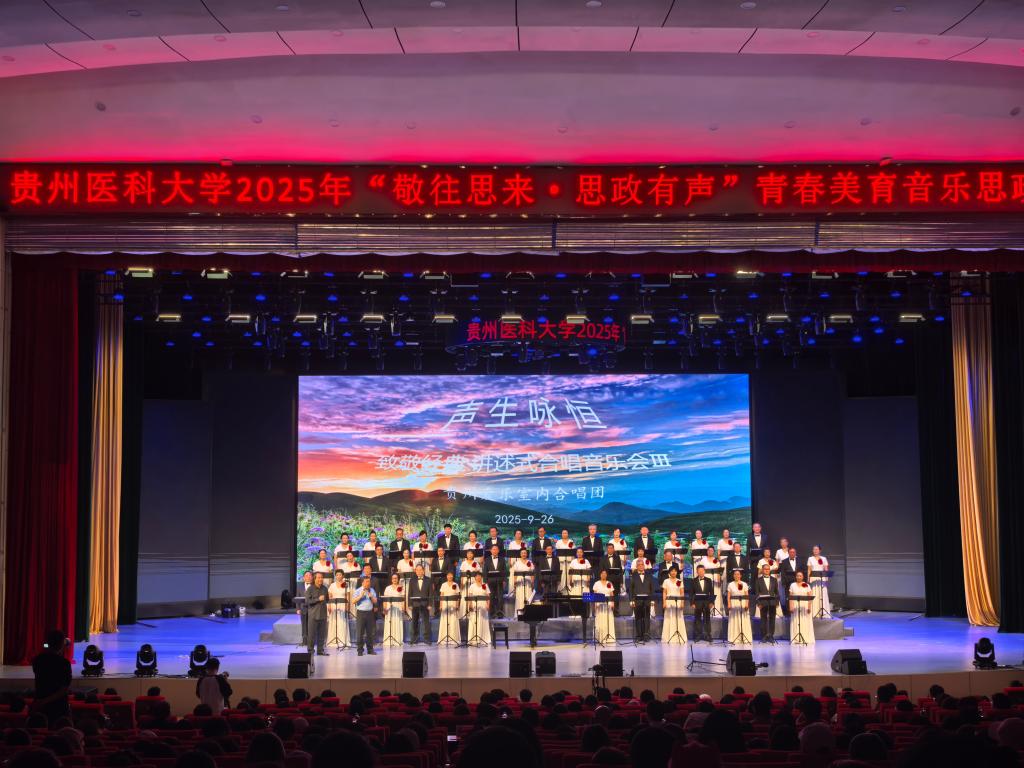 演出现场,贵州爱乐室内合唱团先后演绎《春游》《我住长江头》《黄河大合唱》等经典曲目;学校大学生艺术美育中心学生倾情呈现《如愿》舞蹈与《如你所愿》情景朗诵等节目。经典与创新的碰撞,让全场师生在艺术中感悟历史、体悟时代精神,在共鸣中坚定理想信念。
