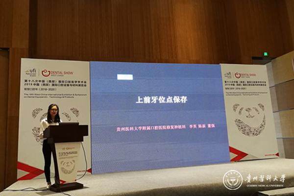 口腔医学院2017级修复研究生李英,指导老师董强教授,代表口腔医学院进行了“上前牙位点保存”的病例展示,得到在场评委专家的好评和肯定。