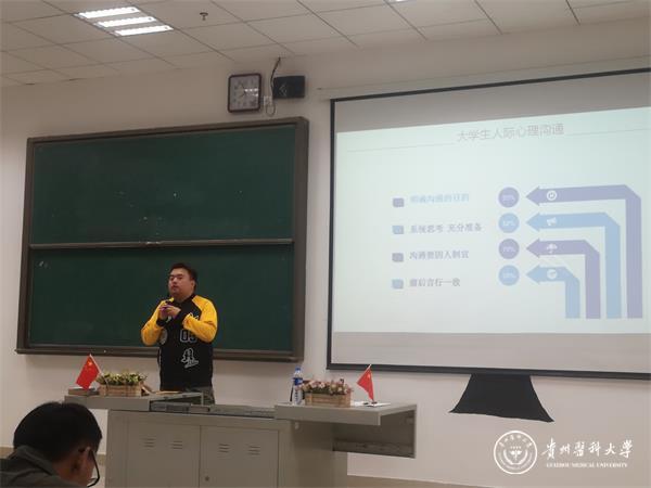 刘安跃以《大学生心理,沟通与技巧》为宣讲主题,从心理学角度向同学们介绍了首因效应、投射效应等,让学生们了解了第一印象给人交流交往的重要作用,掌握初步的沟通技巧,接着通过单向沟通的小游戏,阐述了双向沟通和单向沟通的利弊,希望同学们在与老师同学沟通的过程中,多使用双向沟通。胡睿以《来,我们一起做游戏》为宣讲主题,通过“口令”游戏的互动,引导同学们在学习生活中注重团队协作,与人沟通时学会换位思考。张佳佳宣讲主题《把握现在所拥有的一切,才是最重要的》,以展示大学生上课睡觉、玩游戏等反差场景,提醒大家把握现在,学会珍惜美好的大学时光,不虚度青春年华,用拾级而上的人生态度努力奋斗、前行。李梦娟宣讲主题《校园安全意识培养》,通过校园安全事件的分析,提醒学生注意树立校园安全意识,并从校园场所(室内、室外)、校园道路、校园网络三大方面增强学生校园安全意识,引导形成学生安全行为、养成安全习惯。苏曦以《呵护青春,远离不良校园贷》为宣讲主题,从“什么是校园贷、不良校园贷的危害、如何防范不良校园”三个内容,向同学们介绍了“校园贷”的相关问题,让同学们加强对“校园贷”的防范意识。宋渊丰宣讲主题《大学生的时间管理》,通过自身大学的学习经历与同学们进行交流、举例说明时间管理的方法,帮助同学们树立目标,做好时间管理。