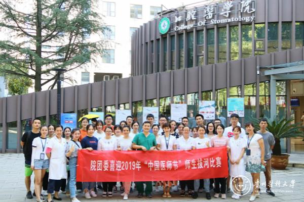 为增进全院教职医护员工生之间的沟通与交流,丰富大家的业余文化生活,8月15日,院团委组织师生在附属口腔医院门前广场开展了喜迎2019年“中国医师节”师生拔河比赛,院领导带领啦啦队为选手助威。经过激烈角逐,教职工2组获得冠军。