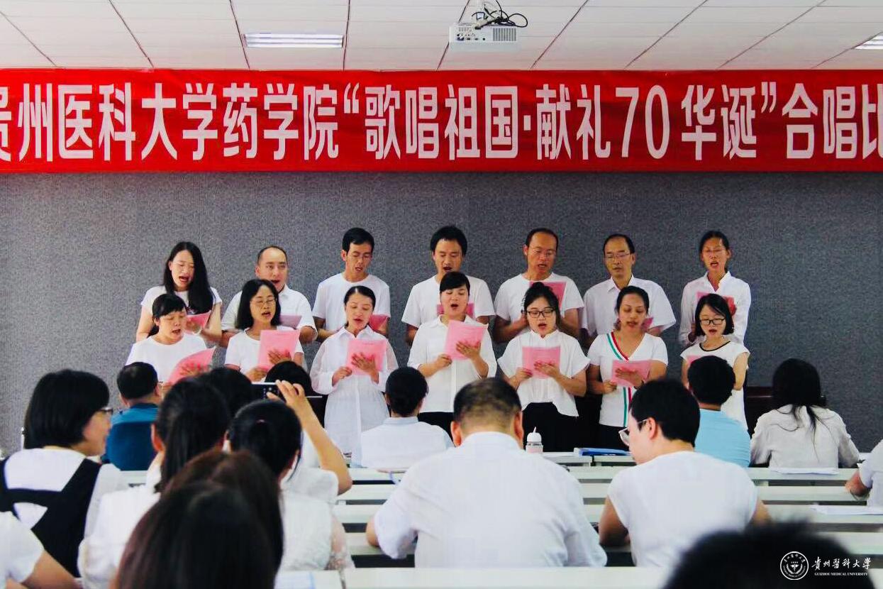 为热烈庆祝中华人民共和国成立70周年,8月29日,药学院党政领导、全体教师共聚格物楼六楼多功能厅,举办“歌唱祖国,献礼70华诞”合唱比赛。