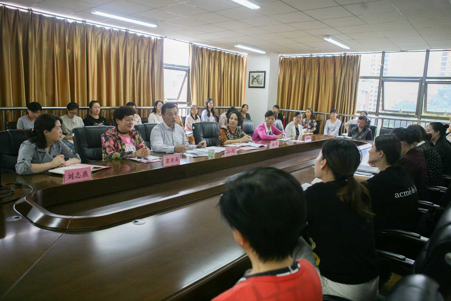 9月18日,护理学院在南校区百川楼5楼会议室召开“不忘初心、牢记使命”主题教育动员部署会。会议深入贯彻落实党的十九大精神以及中央、省委、校党委关于“不忘初心、牢记使命”主题教育工作系列部署,对护理学院“不忘初心、牢记使命”主题教育进行动员部署。校主题教育第二督导组组长孙超出席会议并讲话,院党委书记杨英作动员讲话,院长贾秀英主持会议,全院教师参加了会议。