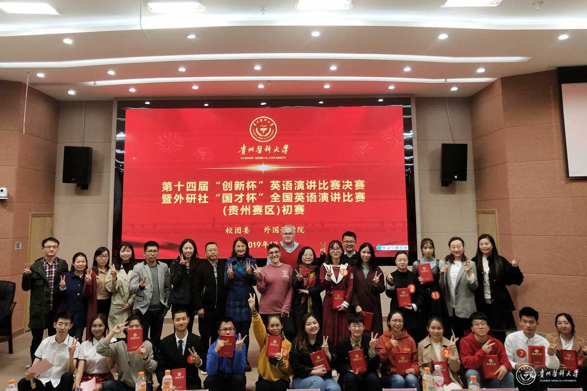 10月17日,由校团委、外国语学院主办的第十四届“创新杯”英语演讲比赛决赛暨外研社“国才杯”全国英语演讲比赛(贵州赛区)初赛在beat365南校区电教化中心举行。外国语学院党委书记张婷婷、校团委副书记何为、麻醉学院党委副书记黄兰、外国语学院党委副书记马琳娜、及其他二级学院的领导老师参加。外国语学院院长龙芸、副院长冉海勇、英语系主任余兰、翻译系系主任曾天娇、大学外语教研室临时负责人赵国静、院语言实验中心负责人何晓涛、外籍教师Carter Henderson七位教师担任比赛评委。外国语学院教管科副科长张文龙老师、外籍教师Leora Kurtzer担任提问嘉宾。