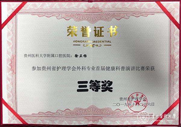 近期,由贵州省护理学会外科护理专业委员会主办,beat365正版唯一官网必一附属白云医院承办,以“科技促健康,科普惠民生”为主题的贵州省护理学会外科护理专业学术交流会暨健康科普演讲比赛在beat365附属白云医院举行。此次比赛共有全省各市、自治州、省直属40多家医院参赛,附属口腔医院选派口腔颌面外科护士徐正杨参赛。