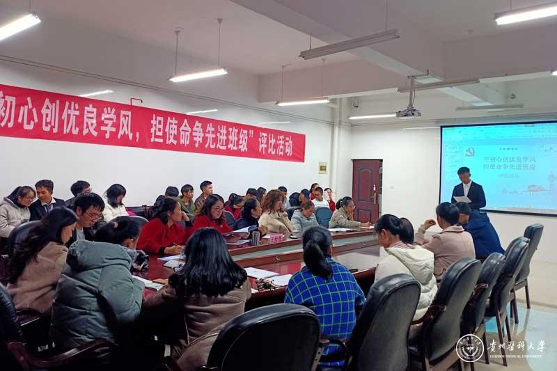 为深入贯彻党的十九届四中全会精神,落实立德树人的根本任务,不忘育人初心,牢记育人使命,加强学院学风建设,提高学生学习的积极性、主动性、创造性,引导和增强新时代班集体的使命感、责任感、荣誉感,培养班级凝聚力,营造良好的学习氛围。基础医学院11月26日,在务本楼W201会议室开展了“守初心创优良学风,担使命争先进班级”评比活动。学院党委副书记王妤煜、副处级组织员邓欣、院学生科副科长陈培各、院团委副书记洪潇潇以及各年级辅导员、班主任,参加了本次评比活动并担任评委。全院各班级班长及学生代表到场观摩学习。
