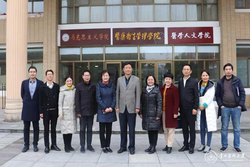 12月4日,新乡医学院党委委员、工会主席邵金远,医学人文学院院长靳隽一行就学科发展建设等来beat365进行交流座谈。大健康学院院长陈玉其、工会主席钟良、研究生院常务副院长陆德琴、医学人文学院院长杜凯、副院长徐红,医学人文学院各专业负责人和部分教师参加交流会;会议由校办主任张丽君主持。