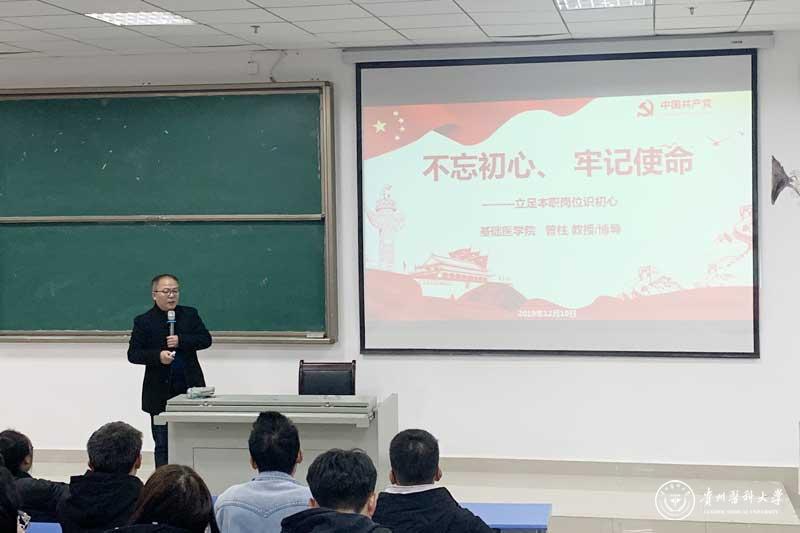 为结合学院青年学生的思想实际,介绍有关党的基本知识,提高他们对党的性质、任务、宗旨,以及怎样成为一个合格共产党员的认识,帮助他们树立正确的世界观、人生观和价值观,争取以实际行动早日加入中国共产党。基础医学院院长曾柱、党委副书记王妤煜、副院长刘杰麟于12月13日至15日轮流给学生入党积极分子和发展对象上党课。