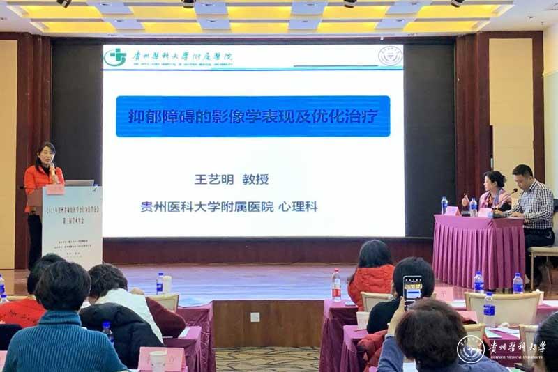 beat365大学生心理健康教育与咨询中心主任王艺明、副主任彭丹及陈玉莲、王凡参加了本次会议,贵州省康复医学会行为医学分会主任委员、心理中心主任王艺明教授致辞并做了讲座“抑郁障碍的影像学表现及优化治疗”。