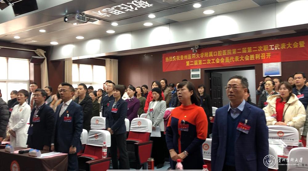 正式会议在庄严的国歌中拉开帷幕,全体起立奏唱国歌。钱禾主持,她指出,“两代会”的召开是为了职工能切实履行好在医院的民主监督、民主管理职责。