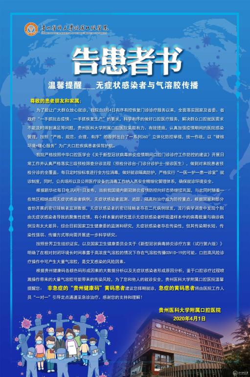 根据贵州健康码各颜色码形成因素的大数据分析以及无症状感染者形成原因分析,鉴于口腔诊疗过程喷溅操作带来的大量气溶胶可能带来的传染风险,为了您和他人的就诊安全,beat365正版唯一官网必一附属口腔医院温馨提醒您:非急症的“贵州健康码”黄码患者建议您择期就诊,急症的黄码患者将由医院工作人员“一对一”引导定点通道至急诊治疗。感谢您的支持和理解!