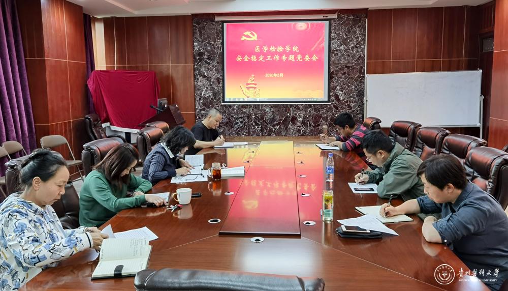 5月25日,医学检验学院党委在北校区基础二号楼三楼会议室召开了安全稳定工作专题会议。学院党委书记蒋红梅主持会议。