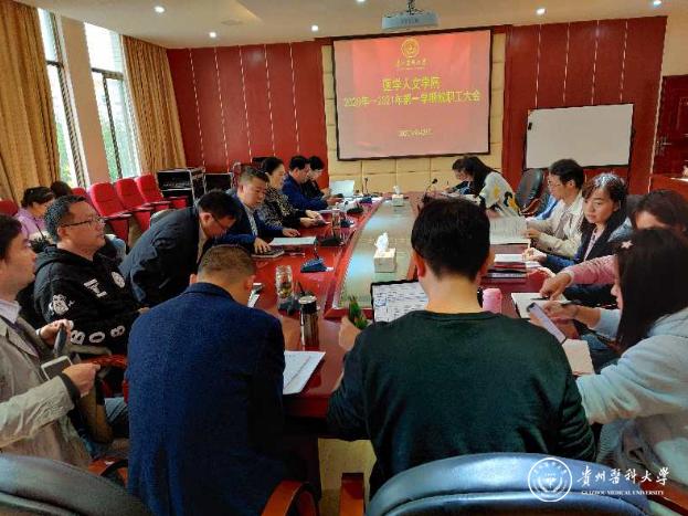 9月28日上午,医学人文学院在南校区善思楼4楼会议室召开2020年至2021学年第一学期教职工大会,学院党政领导班子及全院教职工参加会议,会议由院党委书记徐贵荣主持。