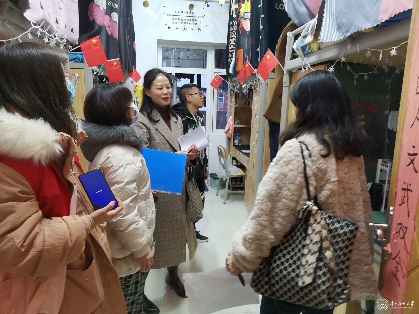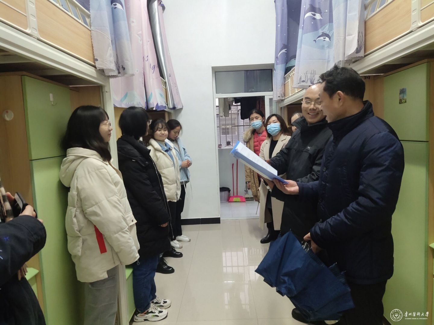 检查人员深入学生寝室,开展排查的同时,了解学生诉求,并向学生进行了“防火、防水、防抢、防盗、防骗”等安全文明宣传。登记并收缴学生寝室违章使用电器,对卫生环境较差的现象进行批评教育,责令学生立即改正。学校将结合全年检查,拟评选50间年度“校级文明寝室”予以表彰。