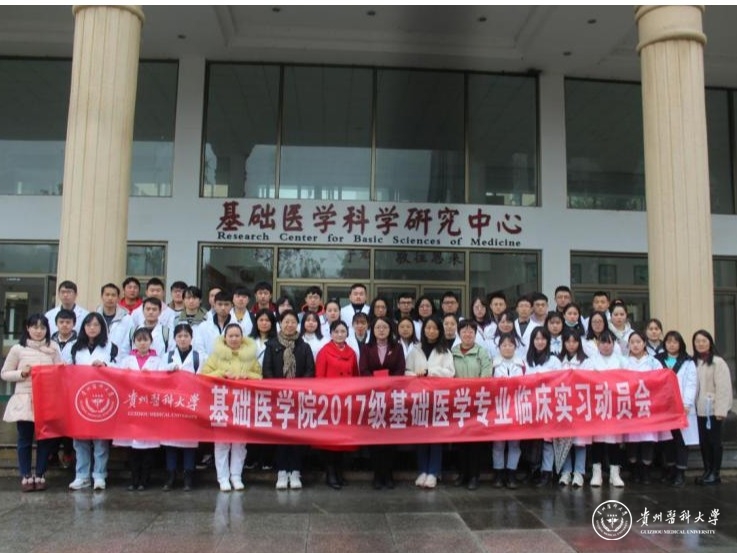 3月8日,基础医学院在务本楼W201召开2017级基础医学专业临床实习动员大会。院党委副书记王妤煜、副院长徐红、大学城医院副主任医师胡少瑾、护理部龙梅、教管科董宇华、肖静、学生科陈圆圆出席,2017级基础医学46名同学参加。