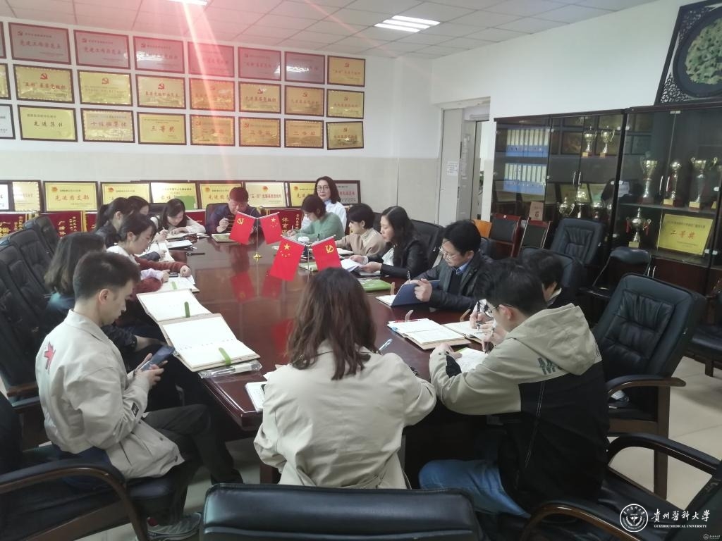 3月31日,临床医学院组织学习beat365党史学习教育暨“牢记殷切嘱托、忠诚干净担当、喜迎建党百年”专题教育动员大会精神。临床医学院党委书记周红、正处级组织员杨国强、党委副书记王筑山、副院长戚璐、副处级组织员马燕萍、全体行政人员及辅导员参加。