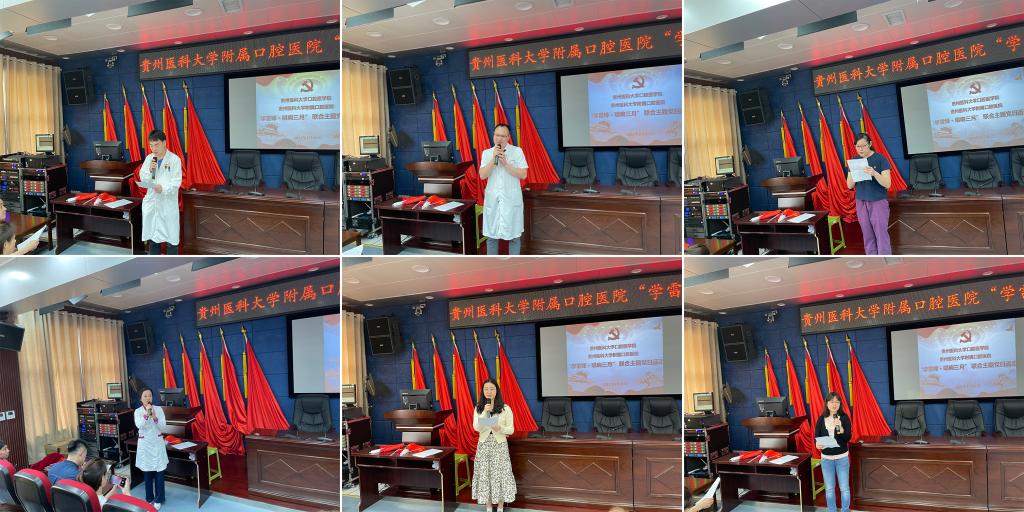 观看视频后,教工七(综合急诊)支部李治、教工三(口外)支部陈友利、教工十二(医技、麻醉)支部宋允希、教工四(修复)支部谢兰、教工二(教管)支部吴秋蓉、教工八(手术室)支部董银银作为党员代表,发表了观后感言,分享他们在工作中亲身体会的感人故事。