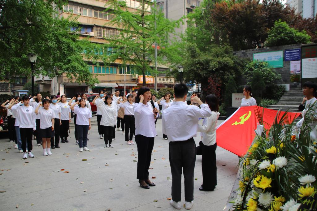 下午5时,缅怀革命烈士活动正式开始,全场齐声高唱中华人民共和国国歌。国歌唱毕,全场肃立,向林青烈士默哀。默哀毕,四名学生党员伴着深情的献花曲为林青烈士敬献花篮。随后,周红以“铭记革命历史 传承红色精神 喜迎建党百年”为题为党员授党课。王筑山携学生党员代表朗诵“追思•颂林青”。接着,全体党员依次走到林青烈士铜像前,献上手中鲜花,追思革命先烈的丰功伟绩,感悟今天美好生活的来之不易。最后,全体党员面向党旗,一同重温入党誓词。