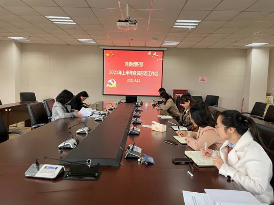 4月12日,为进一步推进部门意识形态工作,党委组织部在知雨楼413会议室召开2021年度上半年意识形态工作会。会议由校党委委员、党委组织部部长蒋红梅主持,组织部全体成员参加。