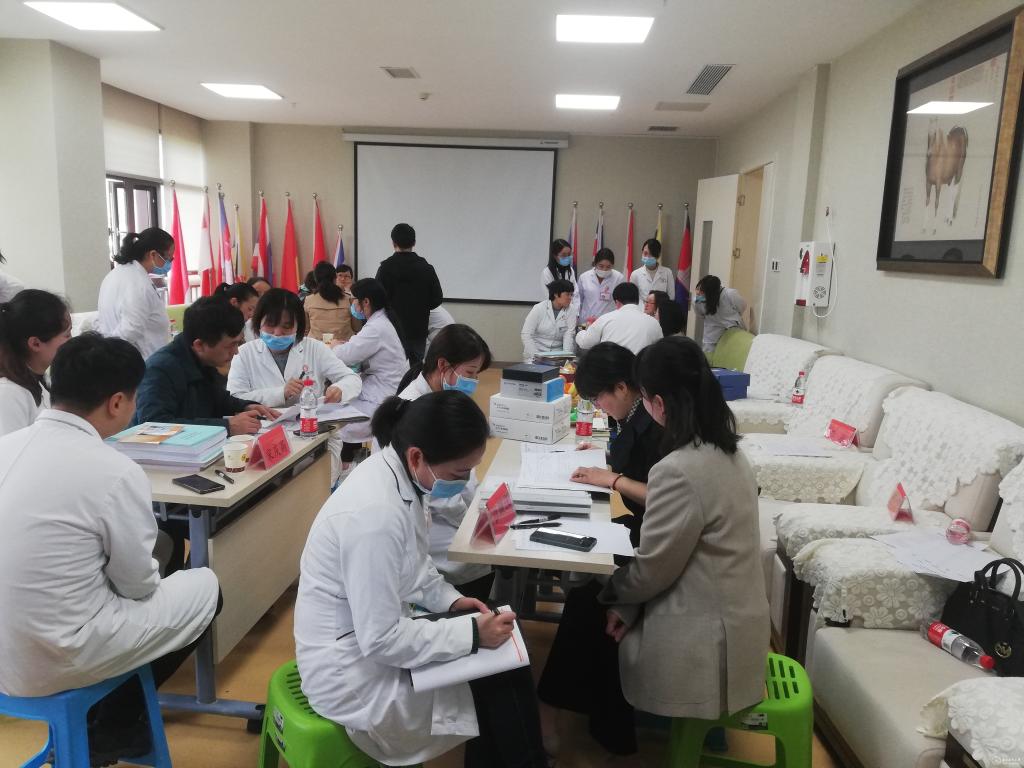 4月15日,2021年住院医师规范化培训结业学员过程考核省级复核工作在口腔医院九楼会议室开展。遵义医科大学附属医院党委副书记刘琪带队省级复核专家组,贵阳市口腔医院副院长陈筑和遵义医科大学附属口腔医院口腔颌面外科主任宋庆高、口腔正畸科主任张疆弢、口腔修复专业基地教学主任陈芳及病理科主任魏丹对我院2021年25名住培学员进行资料复核。院党委书记张军梅,党委副书记、院长马洪,党委委员、副院长唐正龙,副院长王永出席会议;各专业基地负责人、教学主任、教学秘书以及毕业后医学教育管理科工作人员参会。