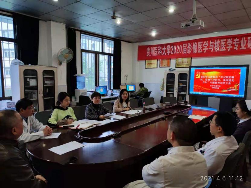 4月6日,医学影像学院在贵医附院影像楼二楼会议室召开党史学习教育和“牢记殷切嘱托、忠诚干净担当、喜迎建党百年”专题教育动员会。学院党委班子成员、支部书记及科室负责人参加。会议由院党委书记李雪梅主持。