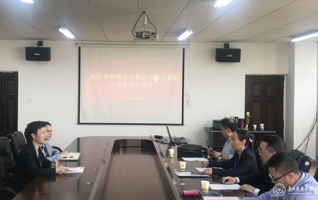4月23日,学校研究生教学中期检查督导小组曹煜、蔡扬、潘卫东、彭吾训四位专家莅临学院检查研究生教学工作。院党委书记杨英、副院长王秀红、各教研室教师、教学科研管理科全体成员、研究生辅导员等到场迎检。