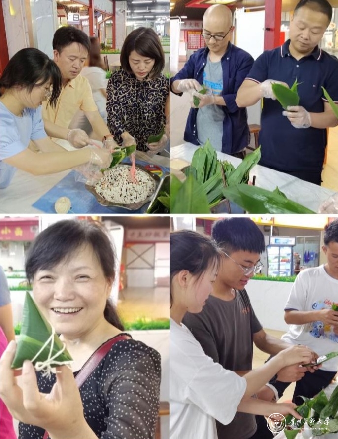 活动中,学院党政领导班子和老师、同学们聊民族习俗、讲党史故事、谈家国情怀、说人生理想。一张张粽子叶、一勺勺五彩米、一颗颗蜜枣、一段段棉线在师生的巧手下变成了一个个紧致饱满、香糯可口的粽子。本次制作的粽子命名为“五彩斑斓甜蜜粽”,寓意广大师生的生活五彩斑斓、幸福甜蜜。