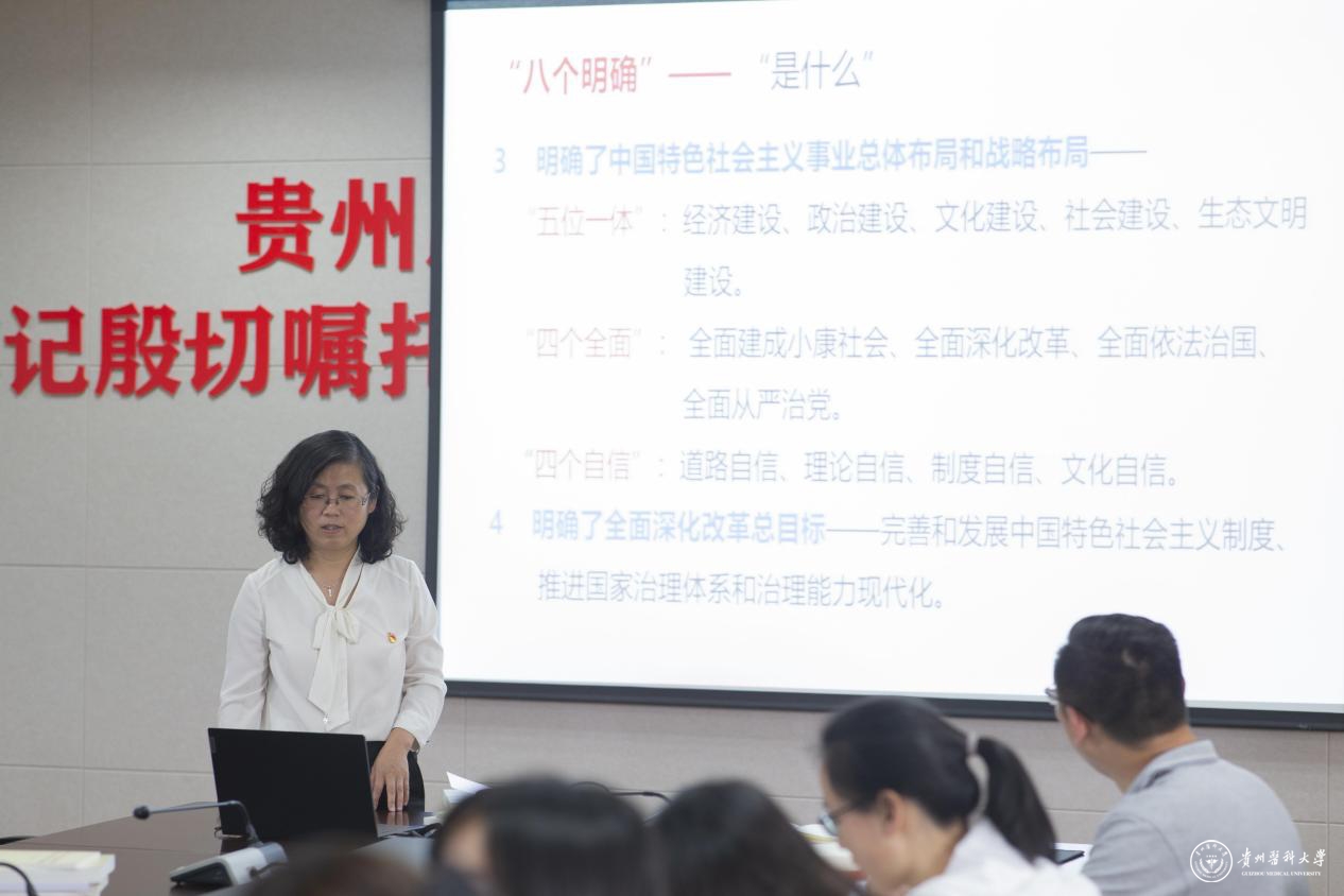 6月23日,组织部党支部书记蒋红梅在知雨楼413会议室讲专题党课,支部全体党员参加。
