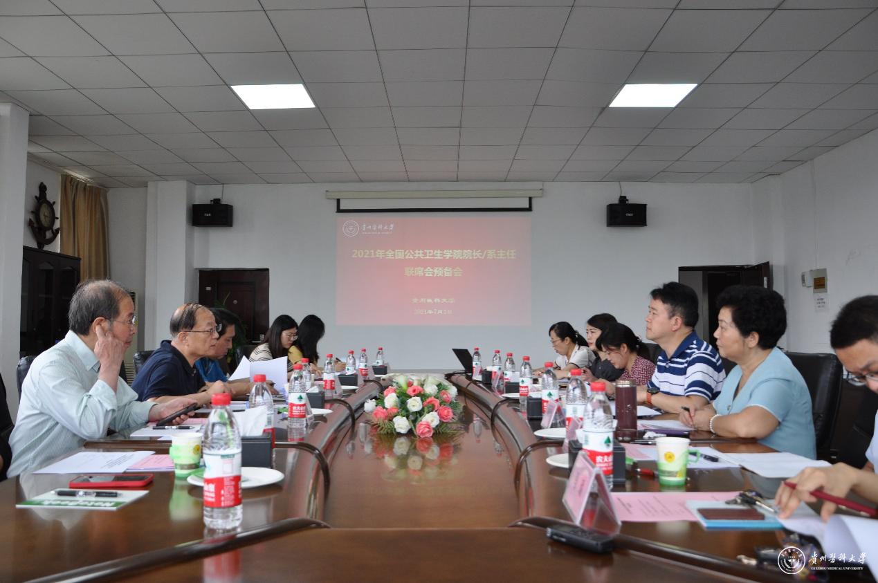 7月3日,2021年全国公共卫生学院院长/系主任联席会议预备会在beat365正版唯一官网必一南校区博雅楼6楼会议室召开。教育部高等学校公共卫生与预防医学专业教学指导委员会主任委员、北京大学李立明,副主任委员、复旦大学公共卫生学院院长何纳,北京大学胡永华,北京市疾病预防控制中心原主任邓瑛,贵州省疾病预防控制中心主任杨光红,北京大学公共卫生学院副院长任涛,中华流行病学杂志编辑部主任王岚及南京医科大学公共卫生学院党政办主任章静等出席。公共卫生学院党政班子、环境污染与疾病监控教育部重点实验室负责人及会务组相关教师参加。