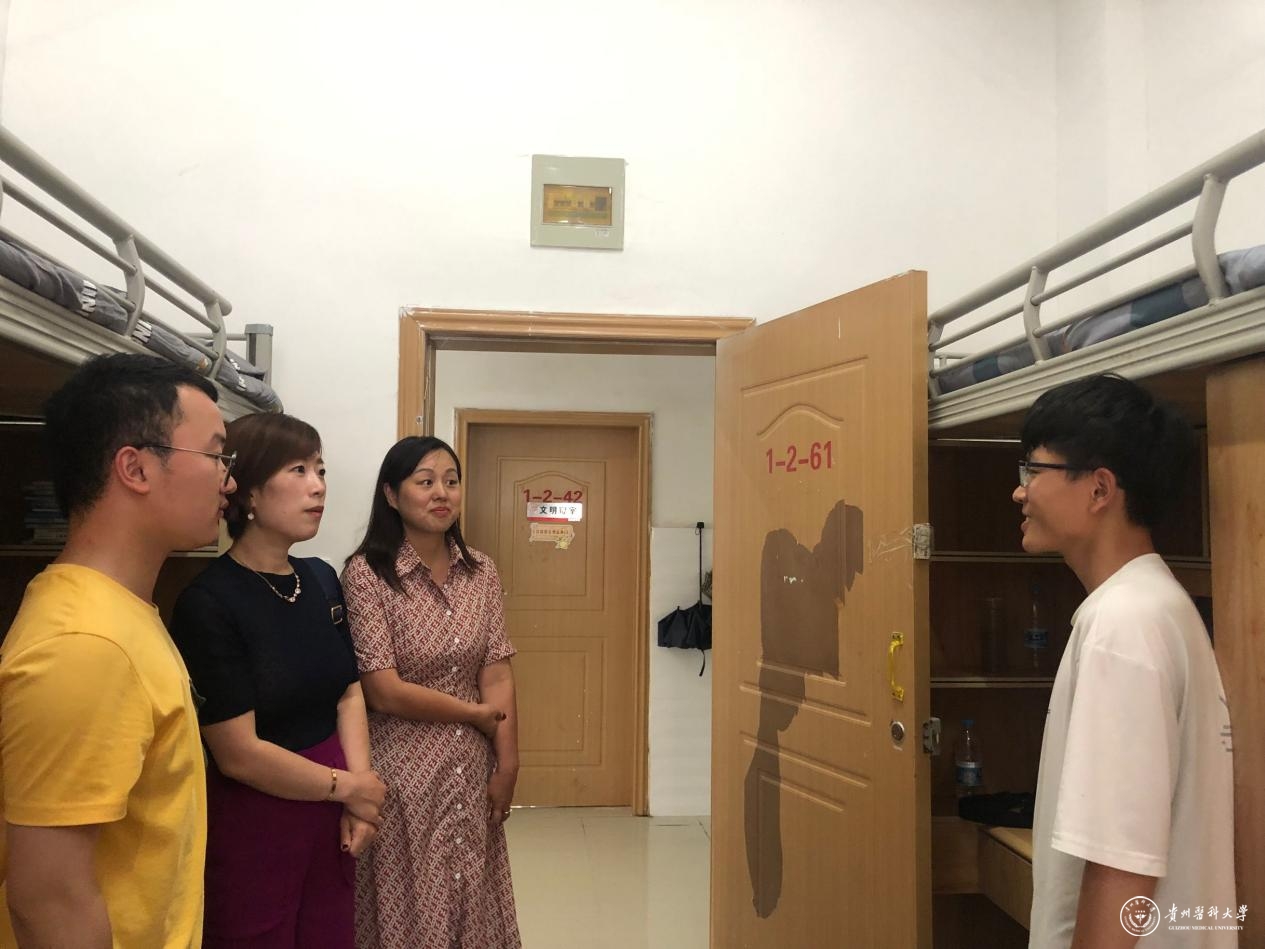 9月16日,校学生资助管理中心副主任贲琛、基础医学院党委副书记张贤、资助中心相关工作人员及基础医学院辅导员,到学生寝室,慰问家庭经济困难的新生。