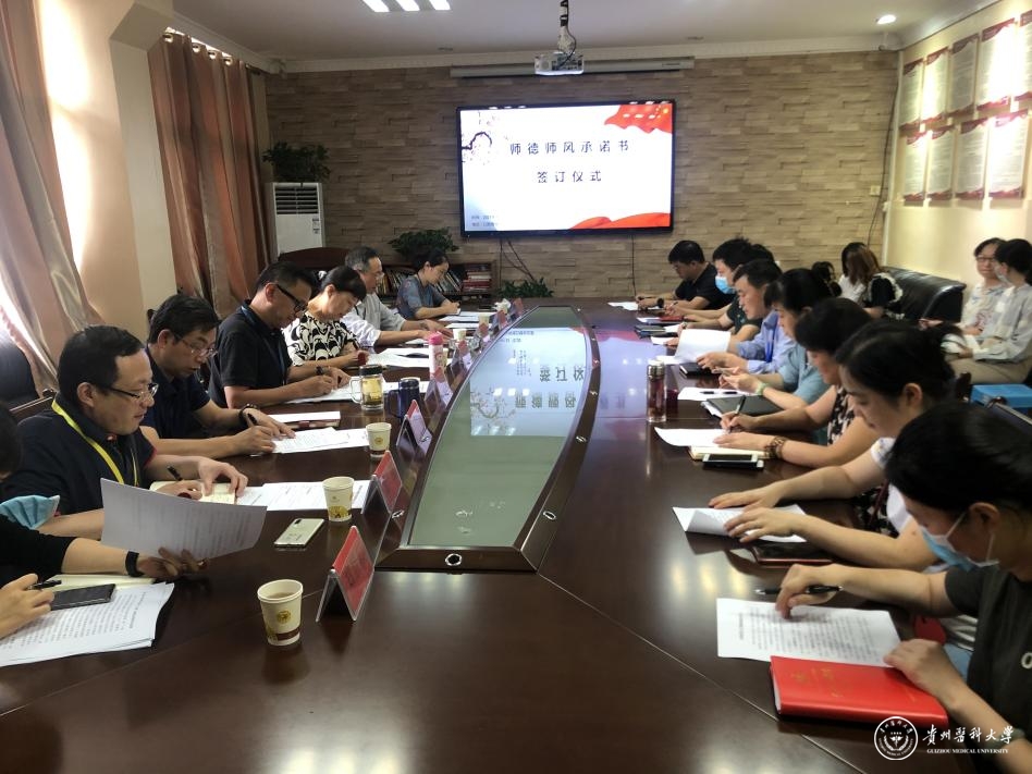 按照《beat365正版唯一官网必一教师师德承诺制度》要求,口腔学院组织各教研室主任及教师代表签订“beat365正版唯一官网必一教师师德承诺书”,各级教师由所在教研室组织签订。通过颇具仪式感的方式进一步增强广大教师的责任感、使命感、荣誉感,规范其职业行为,明确其师德底线。同时要求各教研室强化学习《新时代高校教师职业行为十项准则》,将准则打印粘贴至教研室办公区域的醒目位置,切实做到准则“上墙上心”。