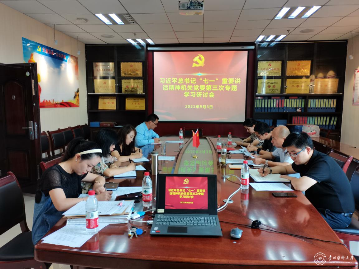 9月3日,机关党委组织召开习近平总书记“七一”重要讲话精神机关党委第三次专题学习研讨会,机关党委委员和机关党支部全体党员参加会议,会议由机关党委书记邓舟主持。