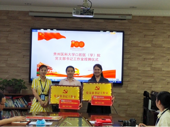 口腔医(学)院为前期建立的党支部书记工作室。并在此次会议上由党政领导为各党支部授牌。各教工党支部书记分别围绕党支部书记工作室建设交流发言,纷纷表示将积极发挥工作室的引领作用。