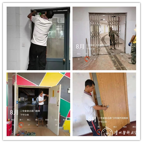 (7)完成南校区一、二学生食堂门窗零星维修,更换门24套、窗户4套: