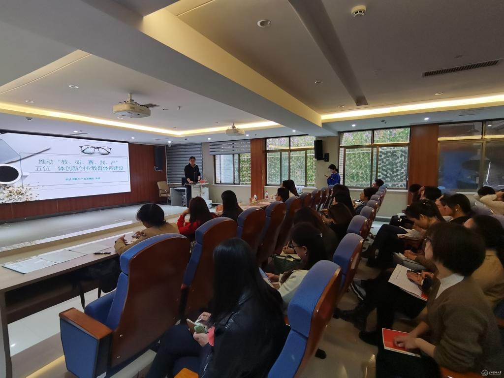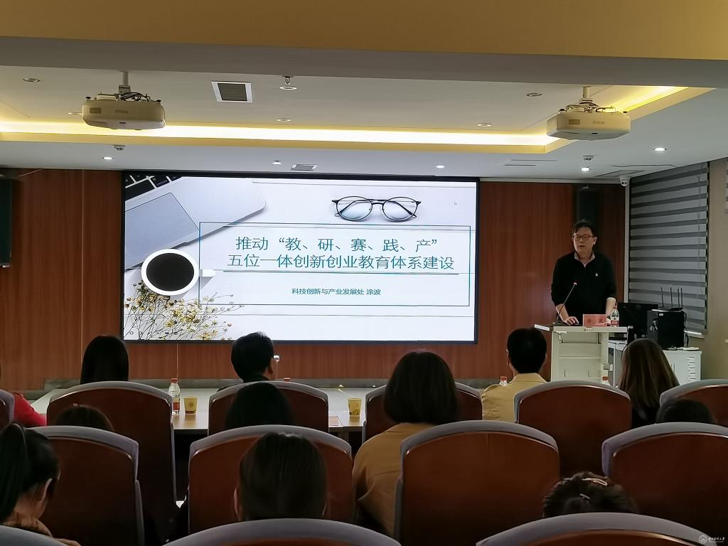 10月12日,科技创新与产业发展处联合人文学院,于博安众创空间举办了创新创业教师培训讲座。科技创新与产业发展处处长涂波以“推动教、研、赛、践、产五位一体创新创业教育体系建设”为题进行主题讲座,医学人文学院院长杜凯、院副院长严万森、就业与创业教研室负责人冯游游以及就相关人员参加。