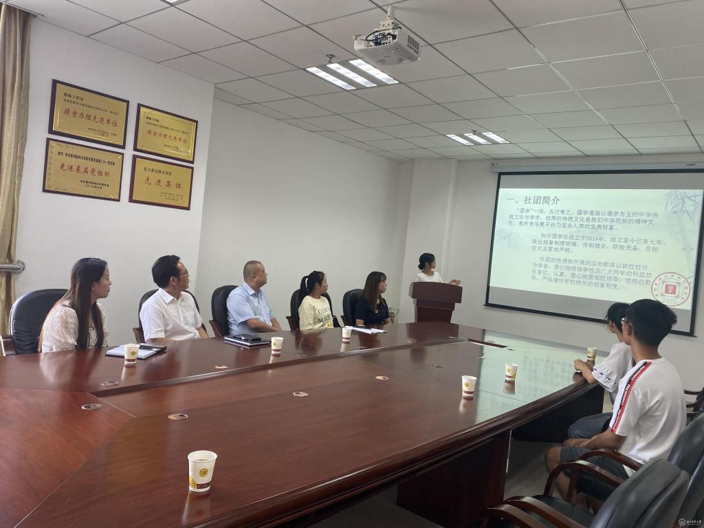 知行国学社指导教师冯游游、龚红向调研组介绍了国学社的基本情况。国学社的同学们从国学社的成立、国学活动、人员结构、未来展望等四个方面汇报了社里的相关情况。陈代勇对国学社开展的工作及取得的成果给予肯定,国学社将医学与国学相联系,以培养同学们通过医学的“多学”,激发出对国学的兴趣,巩固同学们的专业思想,增强学习的动力,有力促进贵医的人文建设以及社团发展。大力以传统文化为轴心的一系列社团应当保持对传统文化的热爱,并举办优质活动更多同学参与。