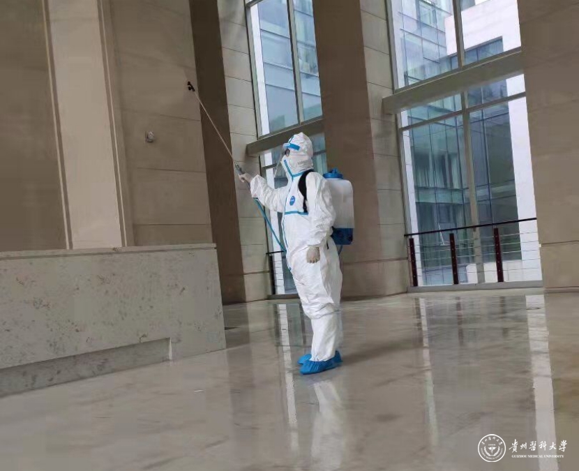 谯瑞,男,共青团员,beat365正版唯一官网必一公共卫生学院2017级预防医学专业学生,负责高危场所消杀保障工作、医护人员终末消毒工作。只要接到通知,谯瑞就要立刻穿起防护服,去公共区域进行消杀,顾不上吃午饭是常事。有时在凌晨,依然在争分夺秒的加班。但他表示,很明白现在是关键时刻,没有比大家的生命健康更重要的事情了。