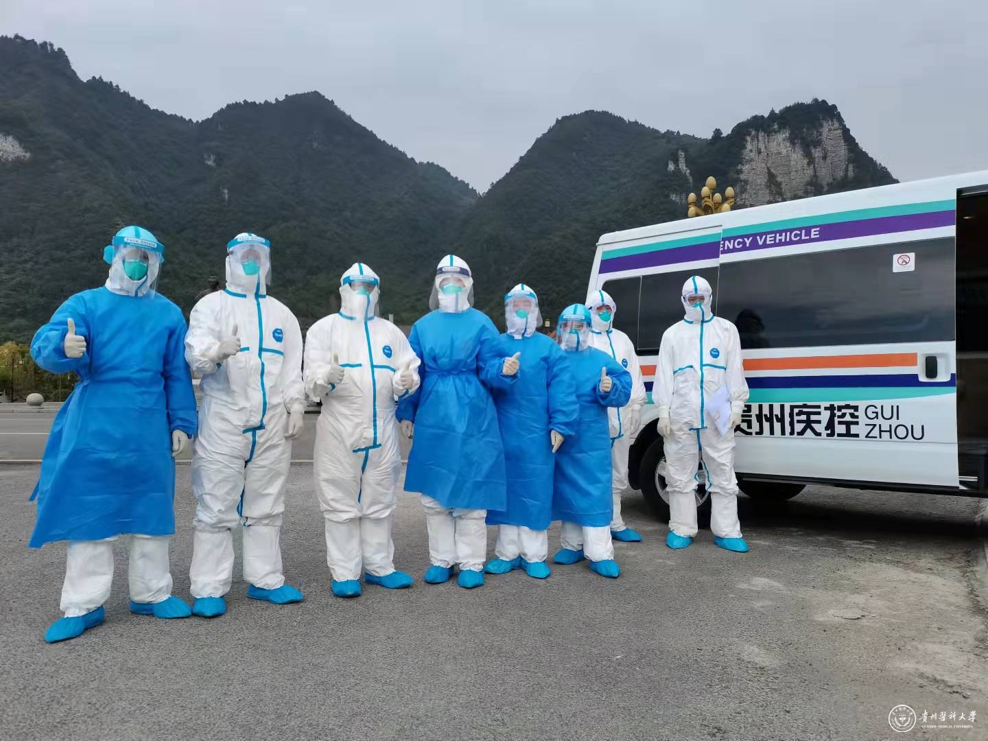 10月18日, 遵义市汇川区发现首例新冠肺炎确诊病例,自10月23日12时开始,遵义市4个城区群众开展3轮全员核酸检测。公共卫生学院2017级预防医学专业张余、谯瑞,在遵义市疾病预防控制中心实习首例新冠肺炎确诊病例后,他们在第一时间奔赴现场,参与一线疫情防控工作。2018级预防医学专业学生王诗琪,临床实习结束返回遵义家中,因疫情滞留遵义,主动向遵义市红花岗区海龙镇贡米村村委会报名加入到防疫志愿者队伍中,主要负责核酸采集点的人员信息登记。