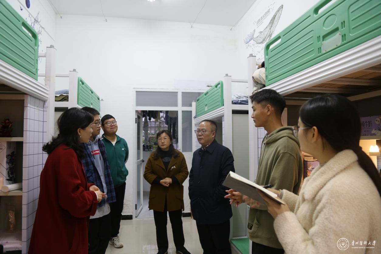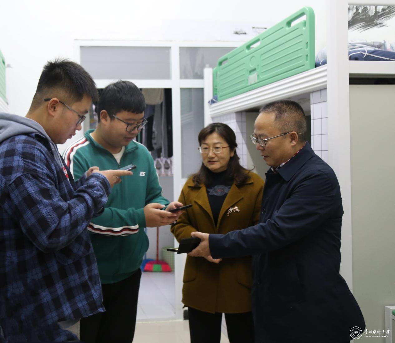 10月28日,校党委委员、副校长曾柱深入学生宿舍看望学生,生物与工程学院党委书记封韬、副书记李宗梅以及全体辅导员陪同走访。