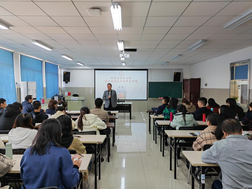 11月10日,校党委副书记汤磊以《统筹发展和安全建设更高水平的平安中国》为题,为医药卫生管理学院党员师生上了一堂生动的专题党课。学院党委书记廖兴江主持,学院全体教师和学生党员参加。