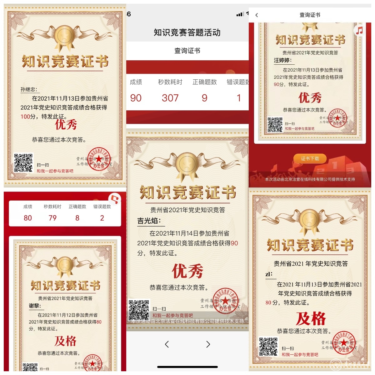 11月8日至11月14日,省司法厅、省法宣办举办的“贵州省2021年党史知识竞答”活动,校工会积极组织支部党员参加,并获得佳绩。