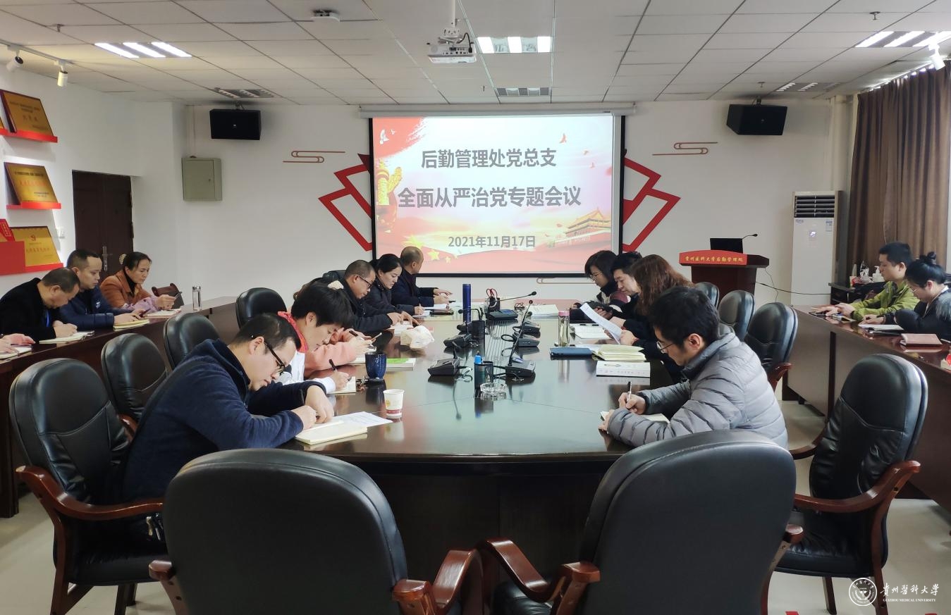 11月17日,后勤管理处在南校区颂雅楼五楼会议室召开了全面从严治党专题会,后勤管理处党总支班子成员出席,全体党员参加会议,会议由党总支书记张玲玲主持。